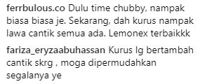 "Dahulu ketika chubby nampak biasa-biasa saja. Sekarang, sudah kurus nampak lawa cantik semua ada," tulis @ferrbulous.co.