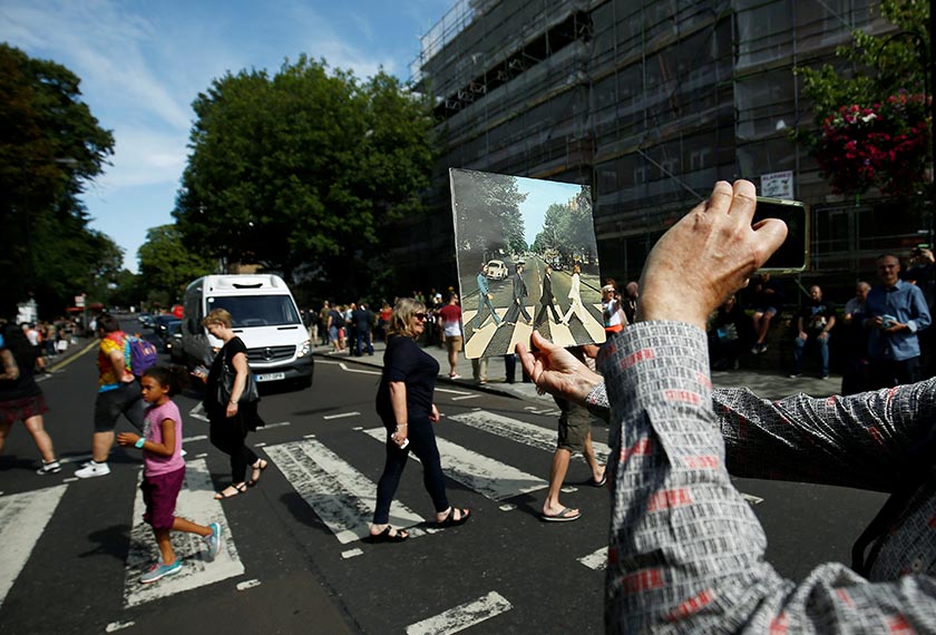 Lintasan pejalan kaki paling terkenal di dunia tersebut terletak di St John’s Wood, London dibanjiri peminat yang berpakaian seperti idola mereka.
