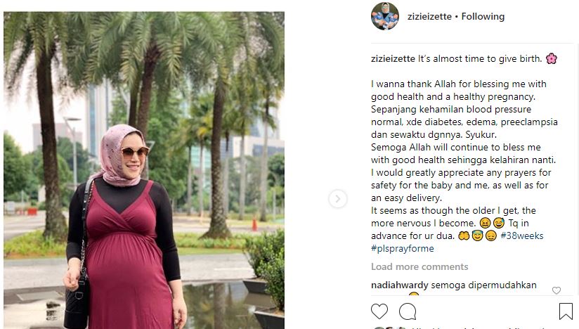 “It seems as though the older I get, the more nervous I become. Tq in advance for your dua. #38weeks #plsprayforme,” tulisnya.