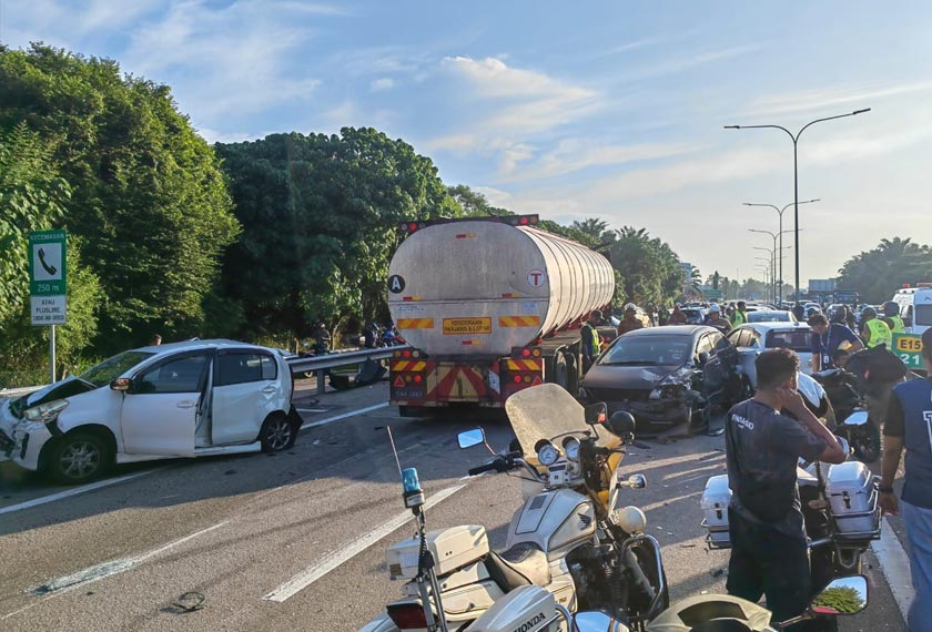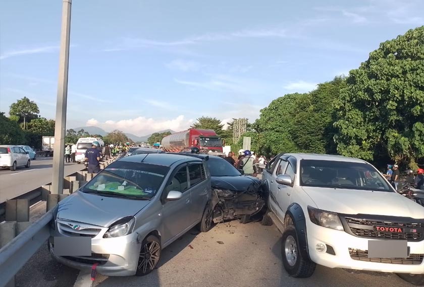 Difahamkan, treler terbabit dipercayai merempuh 12 kenderaan di lokasi kejadian sehingga mengakibatkan kesesakan.