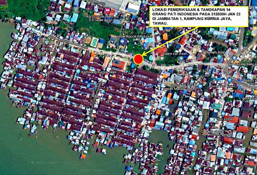 Bagaimanapun, bot yang membawa PATI tersebut gagal dikesan dan dipercayai bersembunyi di kawasan perkampungan atas air itu.