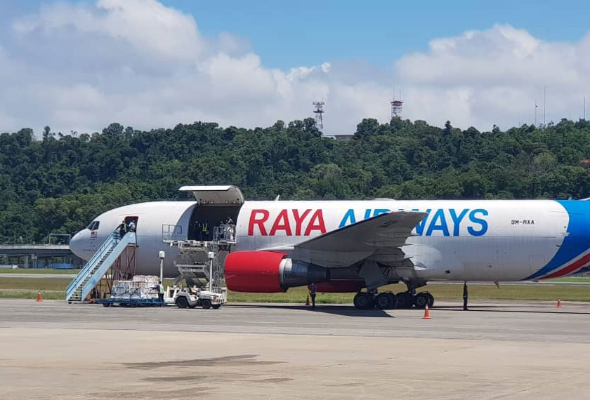 Pesawat kargo Raya Airways B767-223 yang membawa 16,380 dos vaksin COVID-19 itu mendarat pada pukul 12.42 tengah hari.