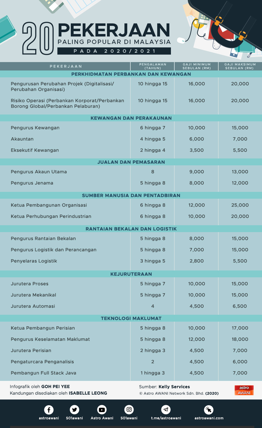 Sekiranya anda berharap untuk mendapat pendapatan yang lebih tinggi pada tahun-tahun yang akan datang, infografik berikut memaparkan senarai pekerjaan dengan gaji asas sebulan paling lumayan di Malaysia.