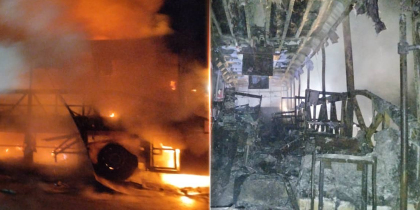 "Kemalangan melibatkan sebuah bas ekspres telah menyeret sebuah motosikal yang terbabas pada ketika itu dan menyebabkan kebakaran bas berkenaan, anggaran kemusnahan terbakar 90 peratus.