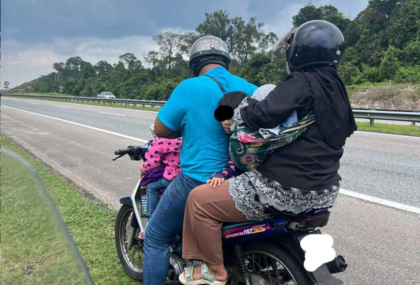 "Tapi kali ini pertama kali saya jumpa orang bawa motor lima beranak dengan baby lagi. Saya berhenti tanya, dari mana. Dia beritahu dari Temerloh, datang Terengganu sebab nak pergi tempat kerja.