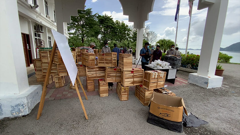 "Jumlah kesemua rampasan adalah RM1.02 juta (termasuk barang rampasan lain berupa sebuah bot dengan dua enjin 200 kuasa kuda),” ujar Mohd Zawawi.