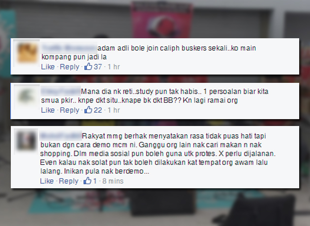 "Buat di tempat lain. Kawasan Caliph Buskers juga kau nak buat," tulis beberapa komen di laman Facebook tersebut.