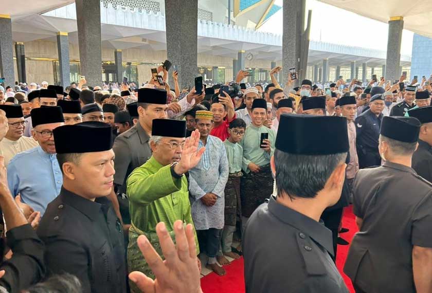 Seri Paduka Baginda tiba di Masjid Negara sekitar jam 8.15 pagi diiringi Perdana Menteri, Datuk Seri Anwar Ibrahim yang terlebih dahulu tiba pada jam 8.05 pagi.