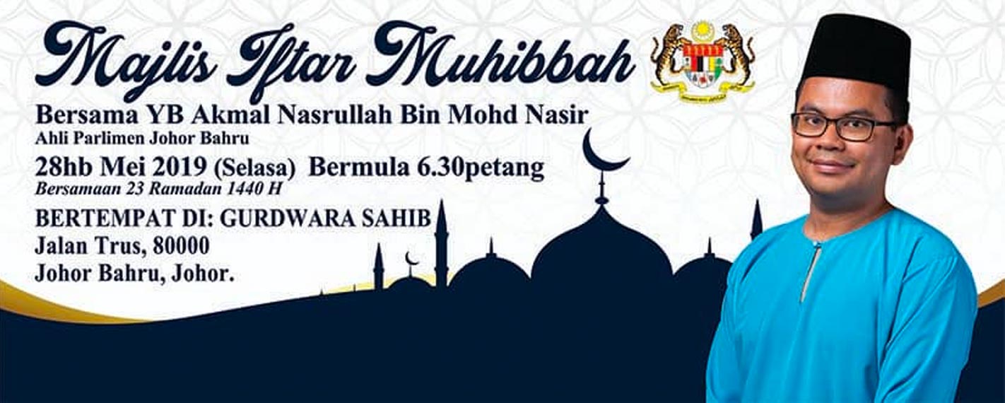 Anggota Parlimen Johor Bahru, Akmal Nasrullah Mohd Nasir tetap meneruskan rancangannya berbuka puasa di Gurdwara Sahib di sini, biarpun setelah dikritik dan dibantah ramai pihak.