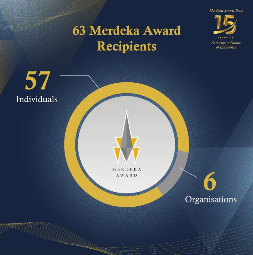 Untuk rekod, jumlah keseluruhan penerima Anugerah Merdeka sejak 2008 telah mencapai 57 individu dan enam organisasi.