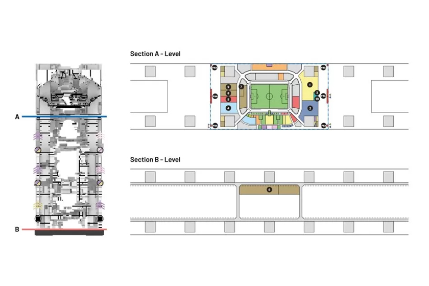 Stadium ini akan mempunyai bumbung tertutup yang menawarkan pengalaman permainan boleh sepak yang unik kerana sebelum ini tiada stadium pernah dibina di atas bangunan setinggi ini.