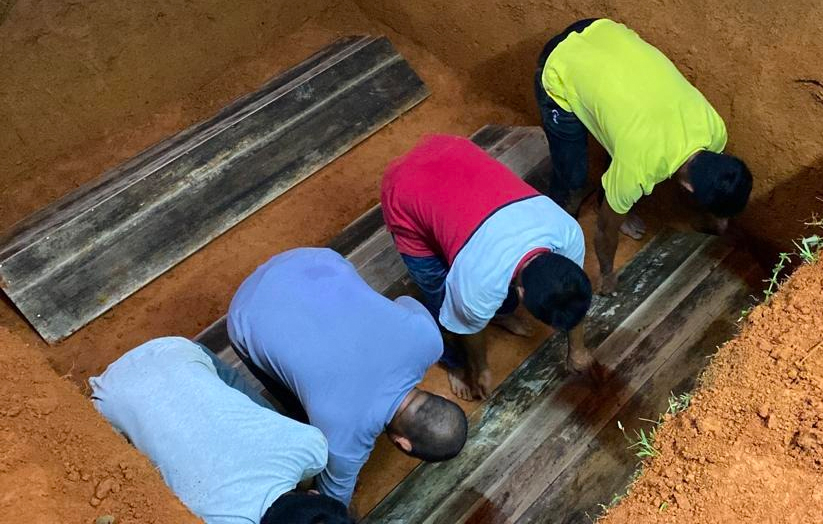 Jenazah Salmah Mat Akib, 54, menantunya Nurul Anis Abu Hassan, 23, yang hamil empat bulan dan anaknya Khairul Ikhwan Nor Azman, 14 selesai dikebumikan kira-kira jam 5.30 pagi pada Rabu.