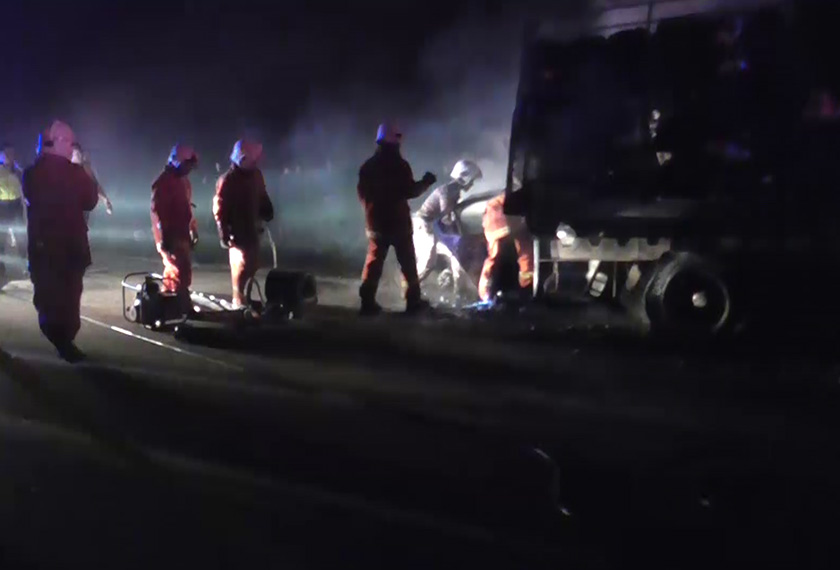 Ketika kejadian, mangsa yang memandu Proton Persona dipercayai gagal mengelak, lalu merempuh lori membawa muatan tilam.