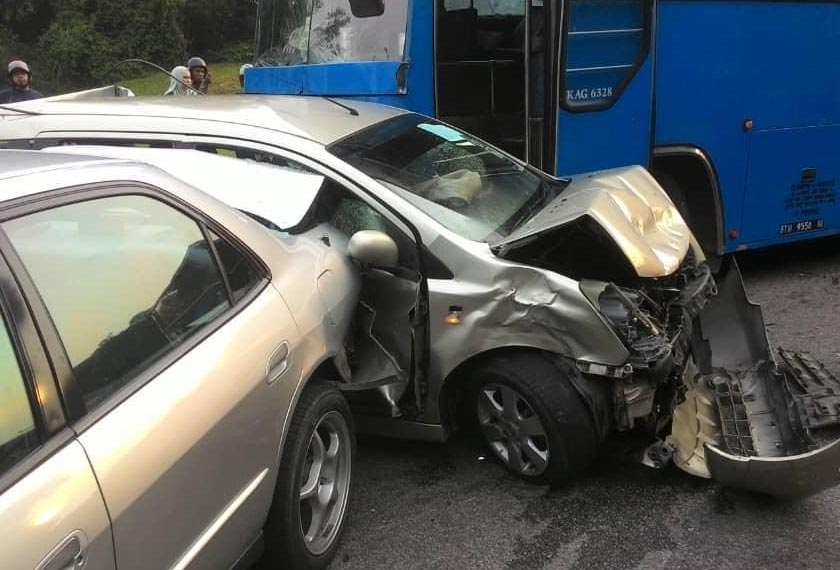 Jelas Adzli, keadaan jalan yang menuruni bukit mengakibatkan bas mengelongsor dengan laju lalu merempuh bahagian belakang kenderaan.