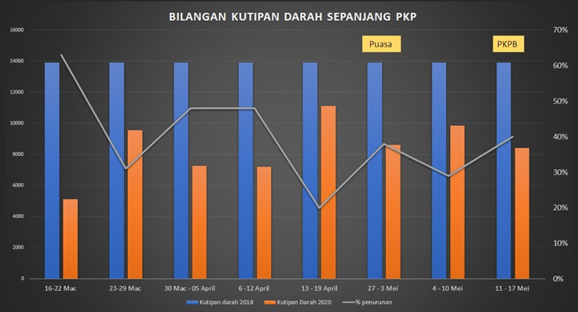 Bagaimanapun, beliau memberitahu, kadar penggunaan darah semasa tempoh Perintah PKP iaitu dari 18 Mac 2020 hingga 3 Mei 2020 juga didapati telah menurun.