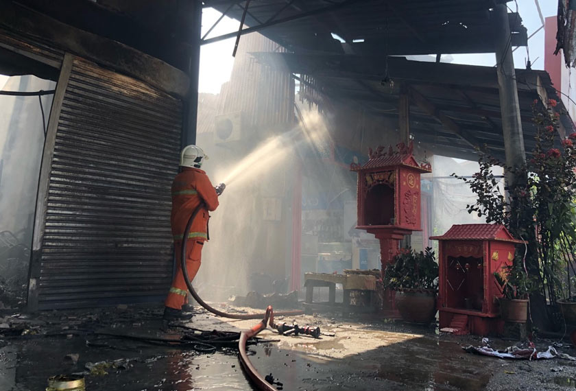 Dalam kejadian pukul 9.45 pagi itu, mangsa yang juga pemilik bengkel, Tan Si Bong, 60, sedang membaiki motosikal sebelum diberitahu oleh seorang pelanggan terdapat percikan api di bahagian atas bengkel sebelum api marak.