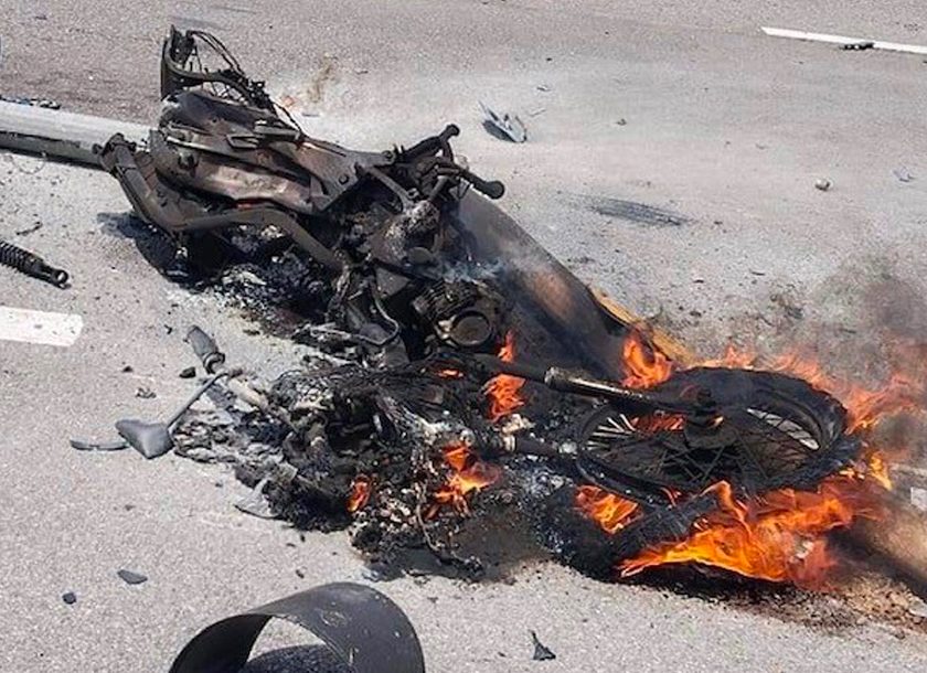 Katanya, pasukan bomba telah di panggil untuk memadam api dan penunggang itu telah dikejarkan ke Hospital Sultanah Bahiyah (HSB) untuk rawatan lanjut.