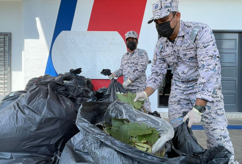 Kesemua daun ketum dibawa ke Jeti Maritim Malaysia di Bukit Malut untuk siasatan lanjut.