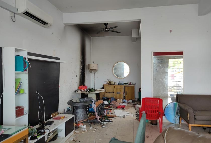 Selain itu, sebuah kereta serta sebuah motosikal yang di parkir di ruang hadapan rumah turut mengalami kerosakan.