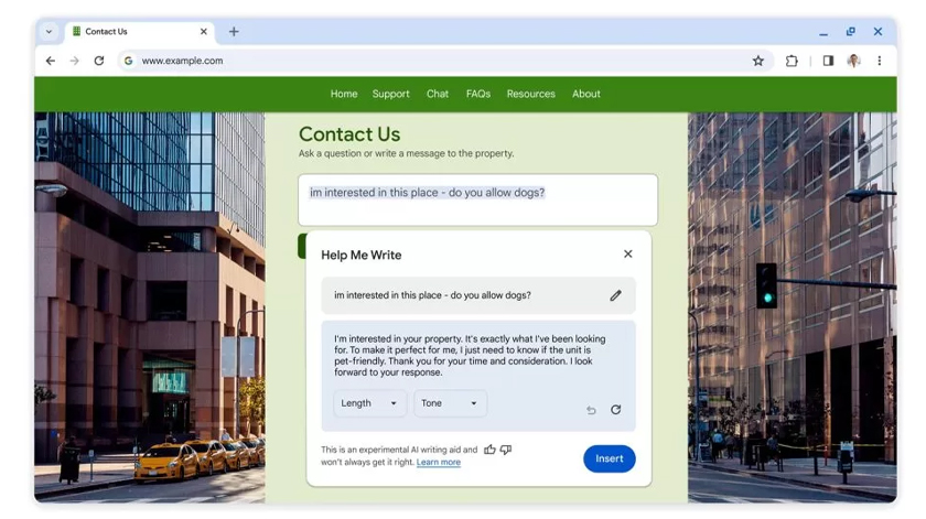 Akhir sekali ialah ciri membantu penulisan. Ini boleh digunakan untuk menulis ulasan ia laman Google Maps atau menghasilkan status di laman media sosial pilihan.