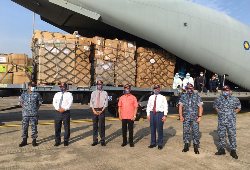 Selain itu, dua pesawat tersebut juga membawa barangan daripada Kementerian Pertahanan iaitu pelitup muka, PPE dan barangan seperti ventilator serta pensanitasi tangan.