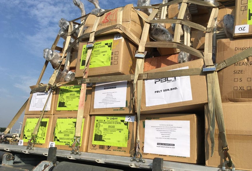 Dua pesawat itu membawa barang keperluan dari Kementerian Kesihatan Malaysia (KKM) seperti Peralatan Perlindungan Diri (PPE), pelindung muka, overalls atau jumpsuit, troli prosedur dan barang-barang lain untuk kegunaan petugas barisan hadapan di sana.