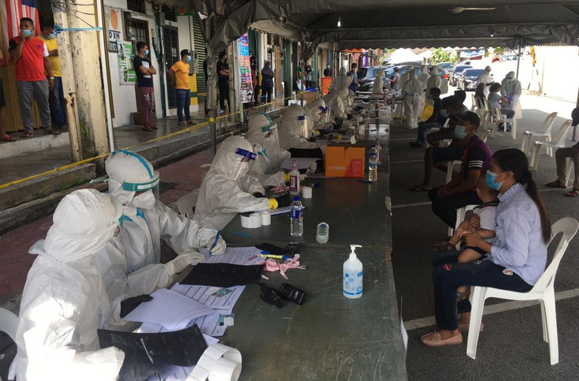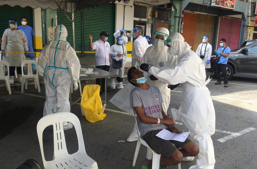Penduduk di dalam kawasan itu pula dilihat sibuk menjalani ujian saringan COVID-19 yang dikelolakan Kementerian Kesihatan Malaysia (KKM).