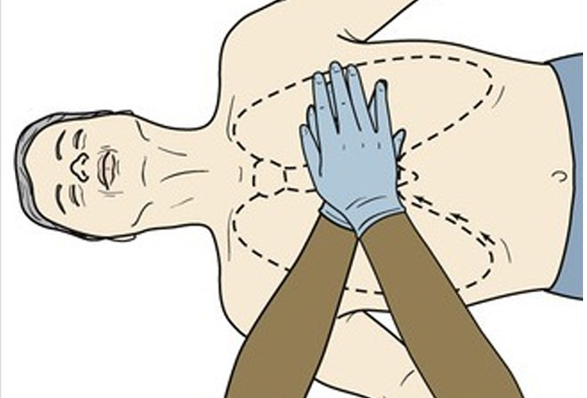 Gambar menunjukkan meletakkan tangan di separuh bawah dada mangsa untuk memulakan tekanan dada semasa CPR.