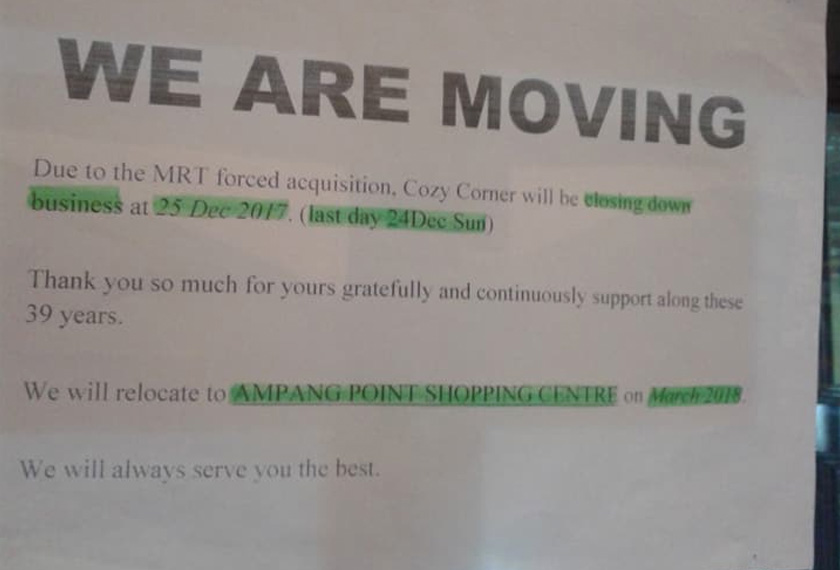 Isu pengambilan tanah pusat beli-belah Ampang Park bagi tujuan pembinaan terowong MRT dan laluan pejalan kaki bawah tanah itu menjadi sebab Cozy Corner mengambil keputusan untuk berpindah dan itu mungkin yang terbaik bagi mereka pada waktu ini.