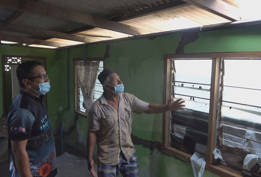 Menurut Mohd Nafi Sulong, 56 tahun, rumahnya hampir roboh dibadai ombak besar.