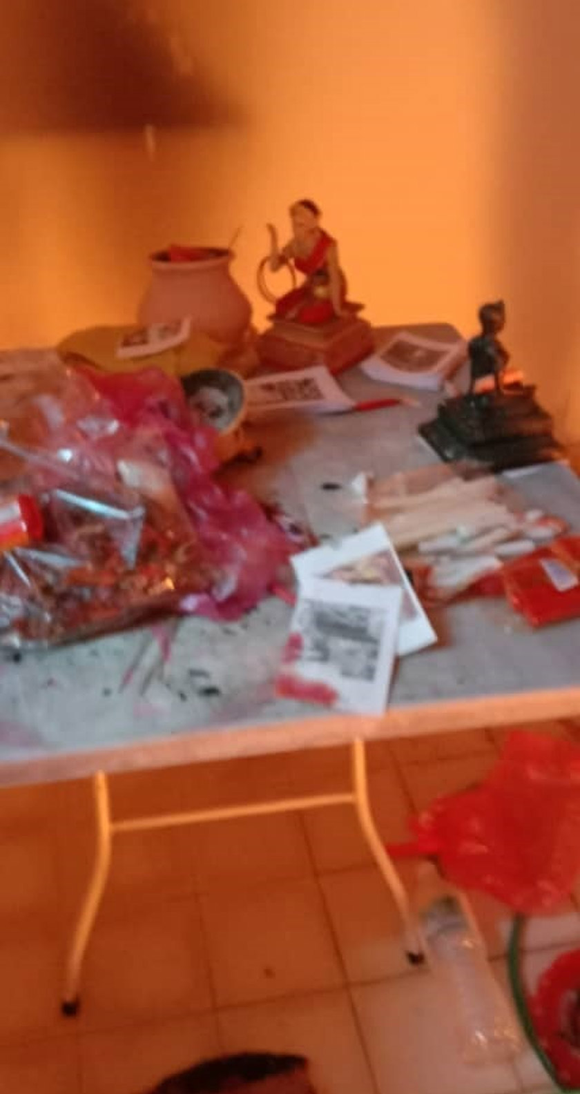 Semasa operasi itu, pihak berkuasa turut menemui pelbagai peralatan bagi aktiviti pemujaan seperti patung dan lilin serta beberapa gambar pasangan dipercayai bagi ritual berkenaan.