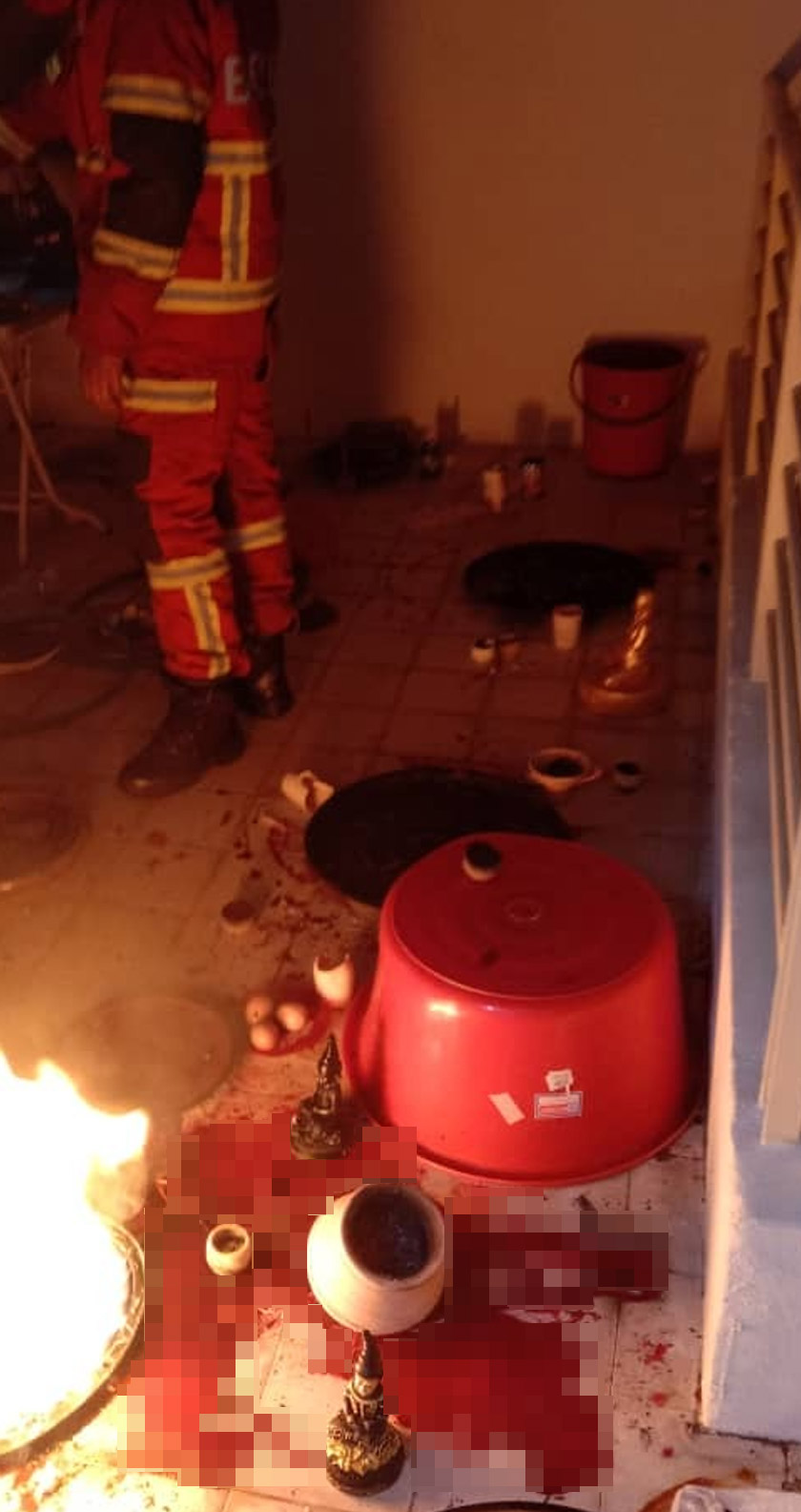 "Sebaik pintu dibuka, terdapat seorang lelaki berumur 23 tahun disyaki sedang melakukan aktiviti pemujaan dan tiada sebarang kebakaran," kata kenyataan itu pada Sabtu.