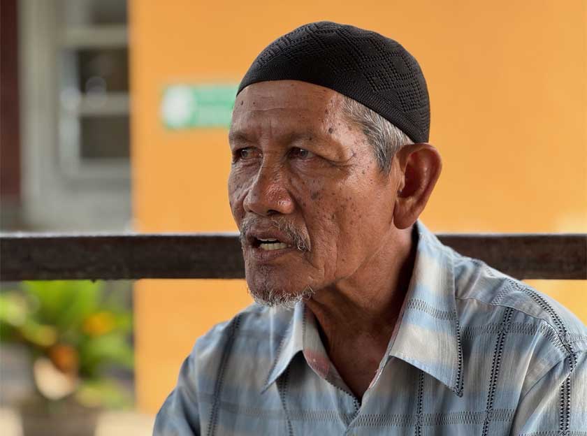 “Saya dengan isteri dan anak-anak lari masuk dalam kampung. Bila masuk kampung, ada sebuah rumah, terpaksa kami 15 orang naik atas rumah dua tingkat duduk di atas tu. Dengar air reda senyap sepi, lepas tu kami turun.