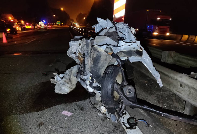 Dua maut, termasuk seorang wanita warga India, selepas terlibat dalam kemalangan yang membabitkan enam kenderaan di Kilometer 12.8 Lebuh Raya Utara Selatan (arah utara), awal pagi ini.