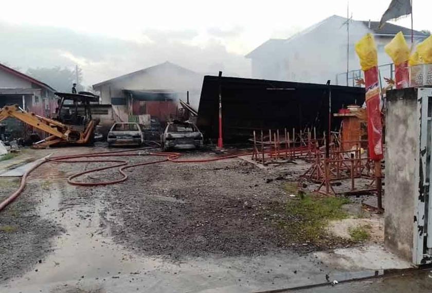 Beliau berkata, selain itu sebuah jentera berat (jentolak) terbakar 80 peratus dan dua kereta Proton Saga musnah 100 peratus bagaimanapun tiada kemalangan jiwa dilaporkan, punca kebakaran serta kerugian masih dalam siasatan. - BERNAMA