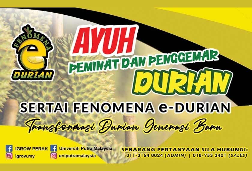 Beliau berkata demikian ketika program pelancaran secara dalam talian program Fenomena e-Durian anjuran Institut Agro Usahawan (iGROW) dengan kerjasama Pusat Hubungan dan Jaringan Industri UPM dan Taman Pertanian Universiti Putra Malaysia (TPU).