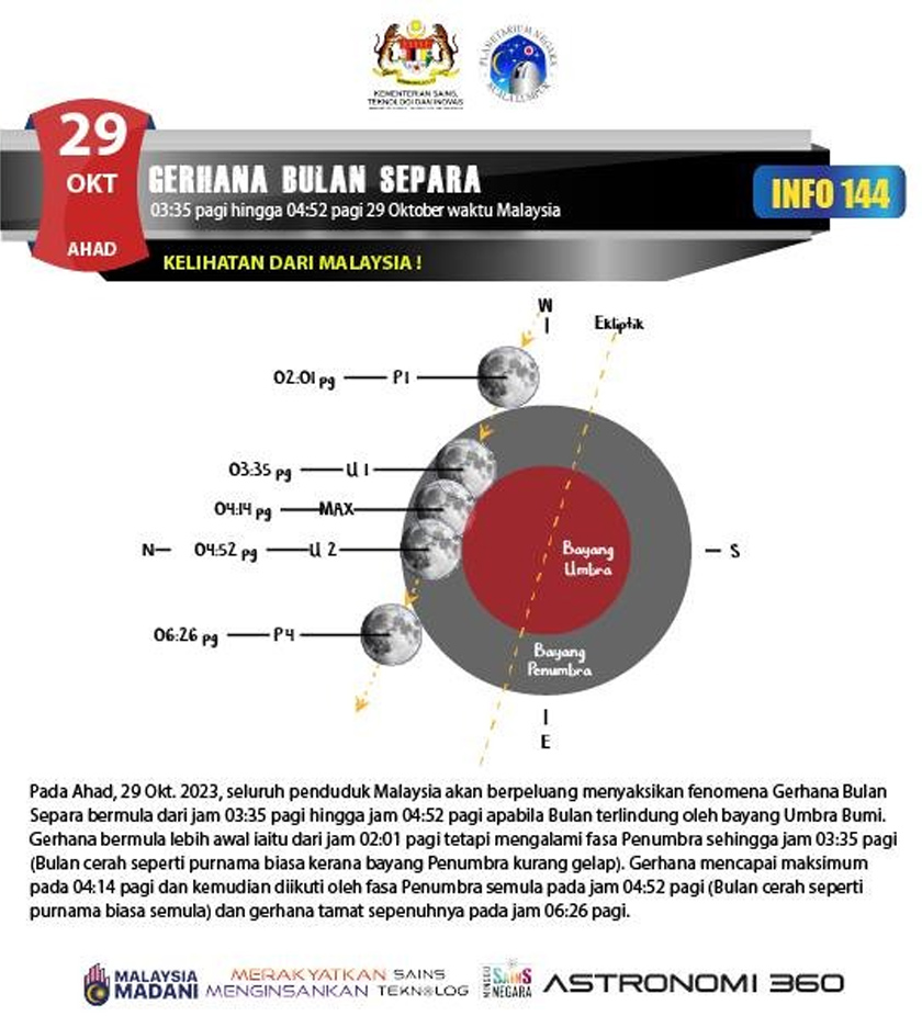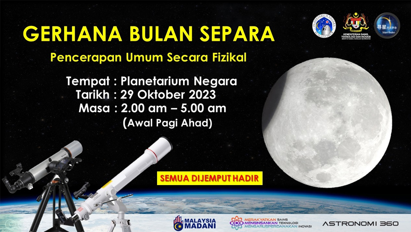 9. Orang ramai berpeluang menyaksikan fenomena gerhana bulan menerusi program pencerapan gerhana bulan separa 2023 di Planetarium Negara seperti di bawah: