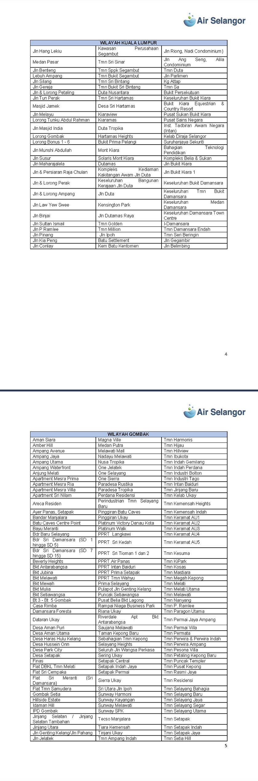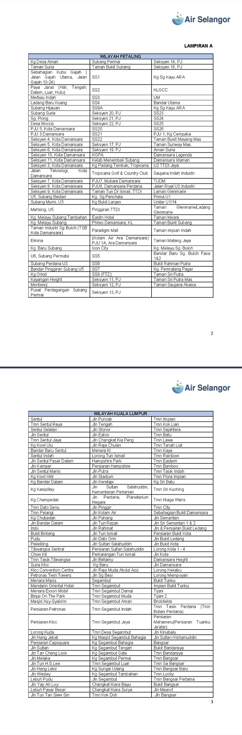"Air Selangor akan memaklumkan perkembangan berkaitan dengan insiden ini dari semasa ke semasa menerusi semua medium khususnya media massa, aplikasi telefon bimbit Air Selangor, Facebook dan Instagram Air Selangor, atau laman sesawang kami www.airselangor.com."