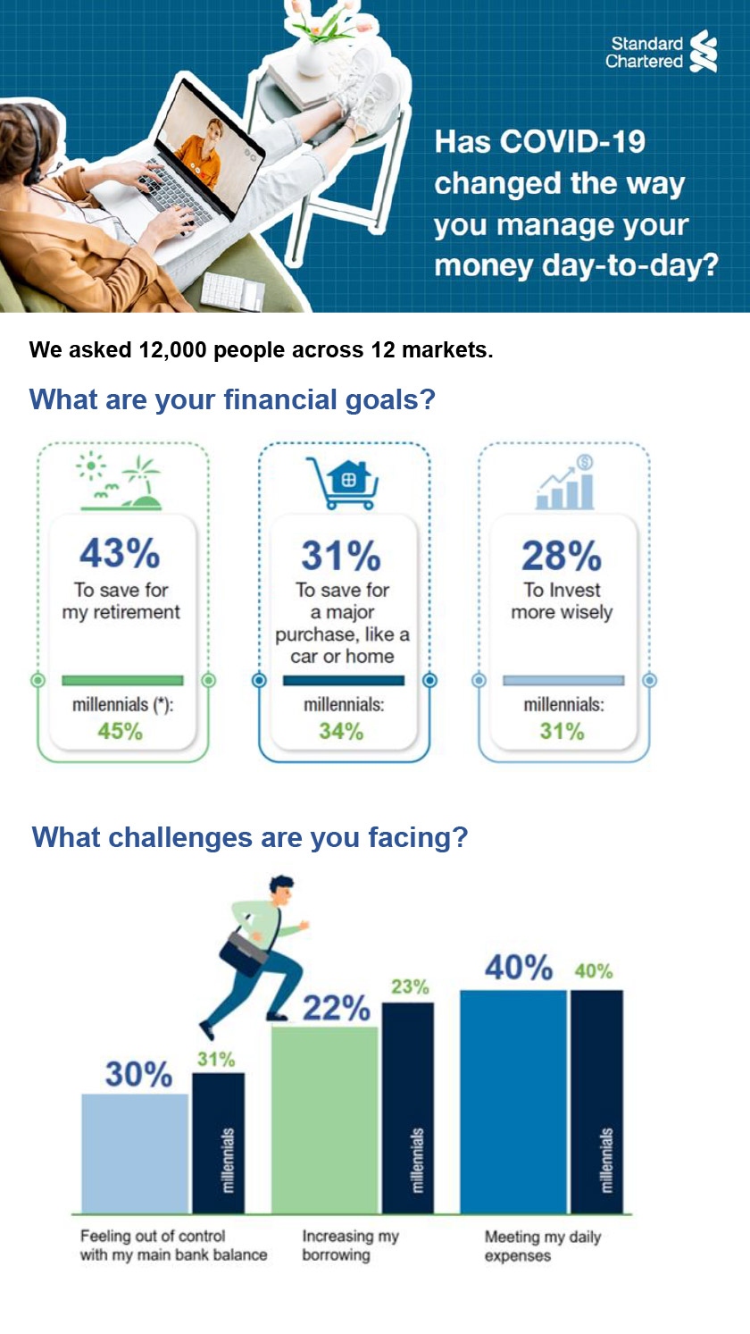 Dalam pada itu, Pengarah Urusan dan Ketua Pegawai Eksekutif Standard Chartered Malaysia, Abrar A. Anwar berkata, selepas dilanda pandemik, generasi milennial Malaysia dilihat lebih bertanggungjawab dalam merancang kewangan mereka.