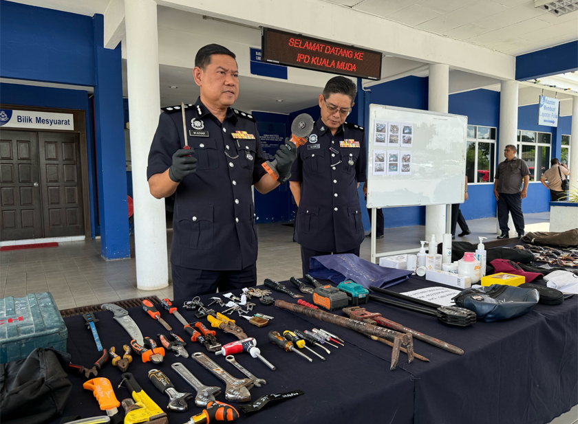 "Menerusi tangkapan itu, polis berjaya merampas pelbagai barangan termasuk sebuah kereta Honda Accord dipercayai menggunakan nombor pendaftaran palsu, enam buah telefon bimbit, 51 alatan pecah rumah, 27 utas jam tangan pelbagai jenama, dua buah kamera rakaman video tertutup (CCTV), dan tiga kunci kereta.