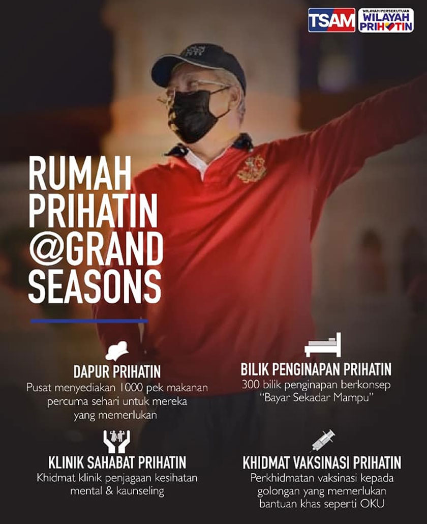 Menteri Wilayah Persekutuan Tan Sri Annuar Musa berkata, Rumah Prihatin @GrandSeasons yang akan beroperasi secara berperingkat mulai 15 Julai ini, akan dijadikan premis yang berkonsepkan hotel kebajikan dengan menjalankan kegiatan sukarela berkaitan perkhidmatan pengawalan penularan wabak tersebut.