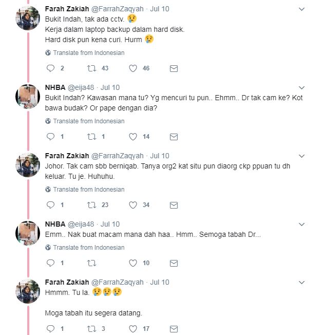 Menurut beberapa entri yang telah dimuat naik oleh gadis tersebut, dia meminta pertolongan seorang wanita berniqab untuk menjaga sebentar beg yang mengandungi laptop, hard disk dan paperwork miliknya.