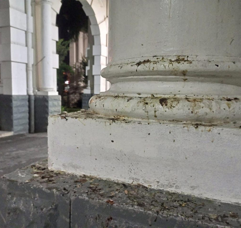 Tompokan najis burung yang jelas kelihatan bertepek di atas jalan, lantai serta tiang stesen keretapi itu bukan sahaja mencacatkan imej sebagai bangunan warisan, tetapi juga terkesan dengan sambutan Tahun Melawat Perak 2024.
