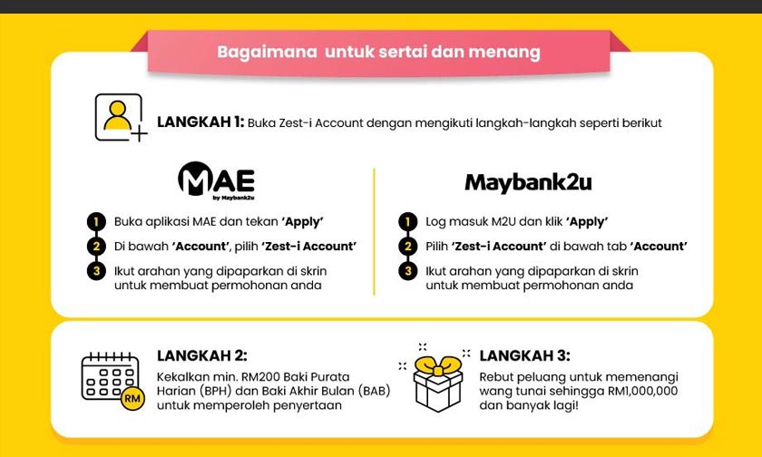 Jangan lepaskan peluang untuk menjadi jutawan pertama Zest-i Account Maybank Islamic!