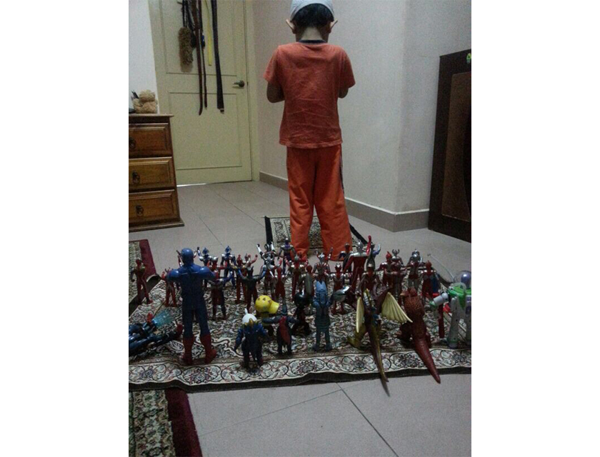 Gambar seorang kanak-kanak menjadi imam solat kepada Ultraman, Transformers dan beberapa ikon permainan kanak-kanak tersebar di sistem pesanan WhatsApp - Sumber gambar WhatsApp