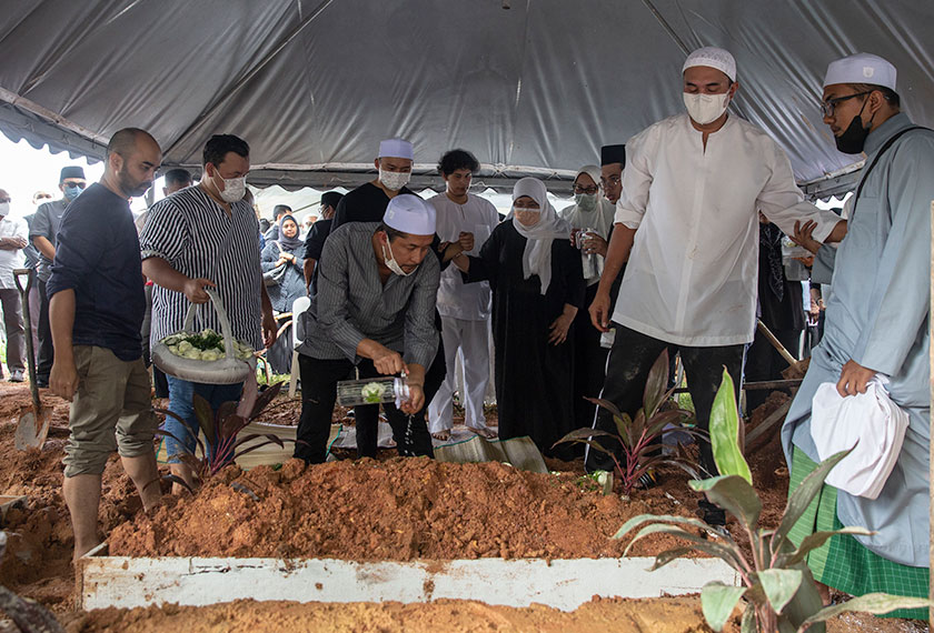 Suasana sedih menyelubungi majlis pengebumian dan sebaik selesai talkin dibacakan, rata-rata yang hadir kelihatan sebak ketika menyiramkan air di atas pusara Allahyarham.