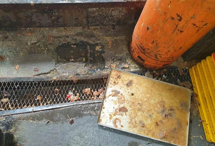 "Hasil pemeriksaan mendapati lantai dan dinding premis penyediaan makanan kotor dan berdaki hitam, tiga pengendali makanan warga asing iaitu Bangladesh dan Indonesia tidak mempunyai suntikan tifoid serta tidak memakai penutup kepala, apron dan kasut semasa mengendalikan makanan.