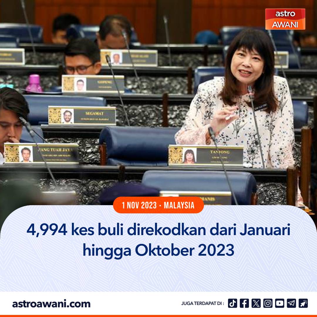 Berdasarkan data, jumlah kes buli yang direkodkan pada 2021 adalah 326 kes, meningkat mendadak kepada 3,887 kes pada tahun 2022. Manakala pada tahun 2023 sehingga Oktober, jumlahnya adalah 4,994 kes.