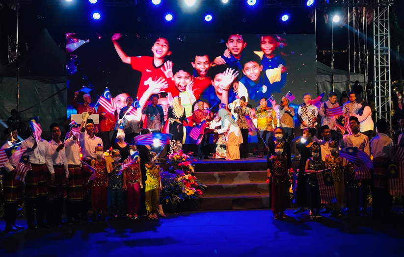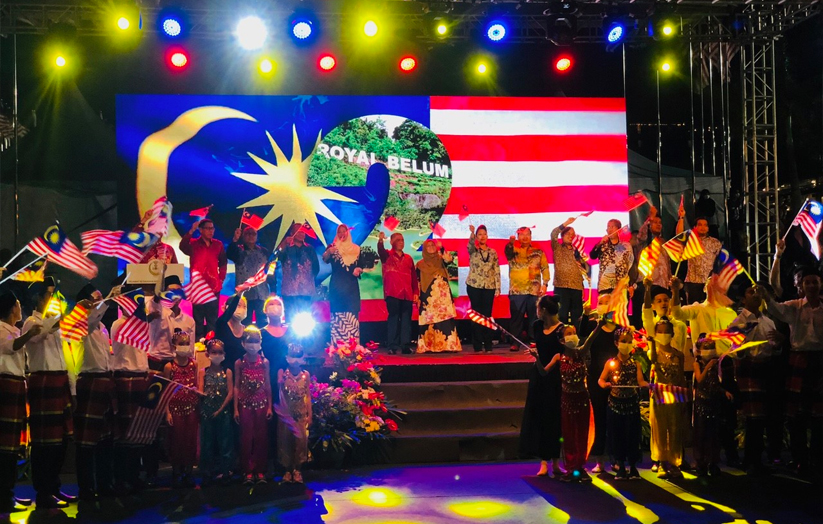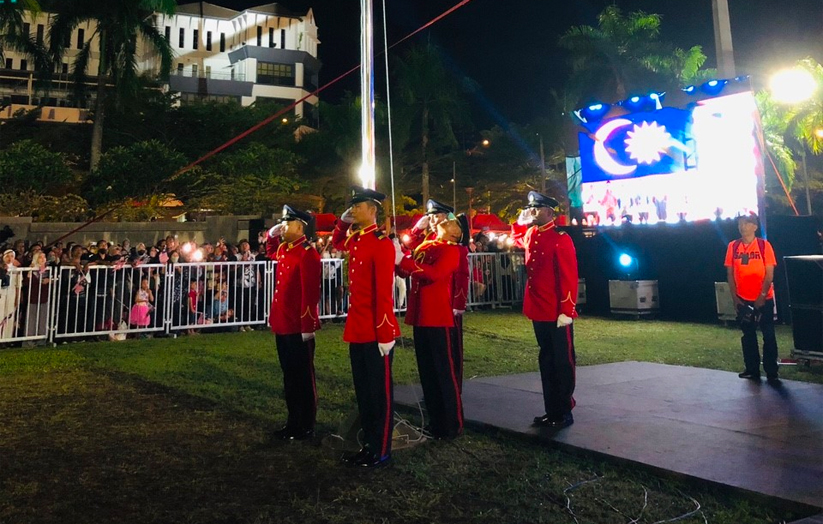 Kemudian lagu Negaraku dan Jalur Gemilang dinyanyikan beramai-ramai diikuti dengan pertunjukan bunga api.