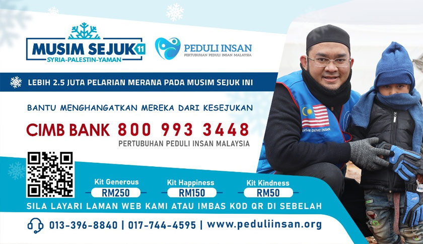SHAH ALAM: Pertubuhan Peduli Insan Malaysia (Peduli Insan) menyeru sokongan orang ramai dan syarikat tempatan untuk menyalurkan sumbangan menerusi kempen Musim Sejuk Siri ke-11 melibatkan tiga negara, iaitu Syria, Yaman dan Palestin.